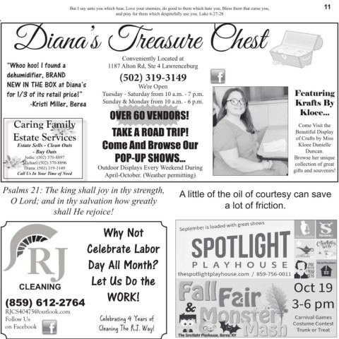 -Kristi Miller, Berea Sunday & Monday from 10 a.m. - 6 p.m. Krafts By