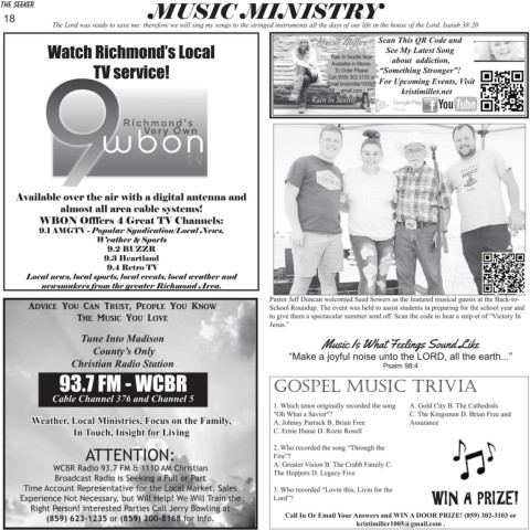 (859) 623-1235 or (859) 200-8168 for Info. Call In Or Email Your Answers and WIN A DOOR PRIZE! (859) 302-3103 or
